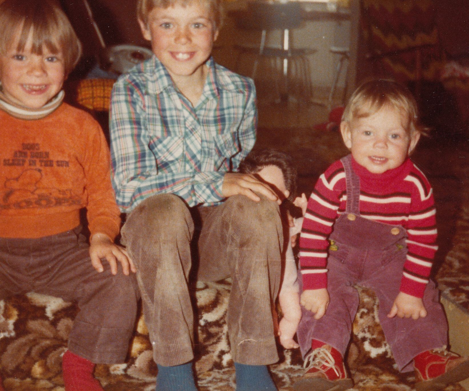Óskar Friðrik og Gísli Sigmarssynir ásamt frænku sinni Soffíu Sigurðardóttir. Þarna sitja þau saman í tröppunum í stofuni að Illugagötu 38.